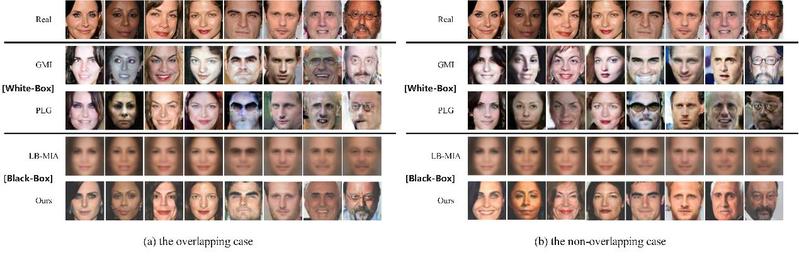 具体而言,攻击模型在与目标模型任务相关的辅助数据集上进行训练,并使用相应辅助数据的预测标签作为条件来指导扩散模型的训练。这允许攻击者在恢复阶段将标准正态分布噪声、预定义引导强度和目标标签输入到条件扩散模型中,生成该标签下的多种代表性数据以供筛选,且无需额外优化算法介入。通过该领域最全面、系统、综合的实验结果表明,与相关工作中的攻击模型相比,本文方法在人脸识别任务中的最高攻击准确率达到56.13%,前五类攻击准确率高达84.54%,与现有最先进的白盒攻击效果媲美。其次,在相似性、真实性的评估下该方法均领先同领域最先进的方法,生成了更准确、真实、相似的数据,可用于进一步检测和分析受保护模型的隐私鲁棒性和受保护程度。