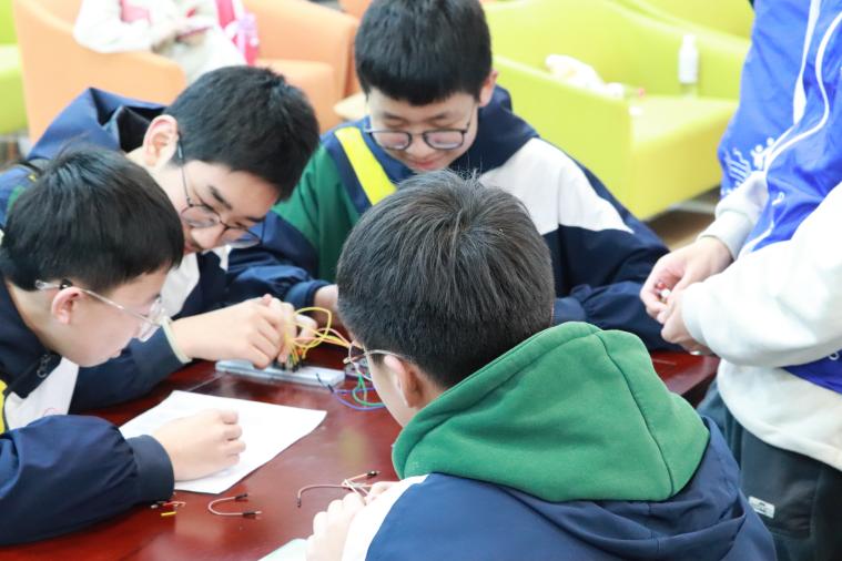 现场还开展了电子芯片元器件互动环节,景苑中学的学生在电子师生的带领下,了解电子芯片元器件的工作原理,动手安装焊接电子芯片元器件,同学们在这个过程中,看到了平时生活中难得一见的芯片器件,直观感受到了科技的神奇魅力,很好地培养了科技创新意识、动手实践能力和团结协作精神。