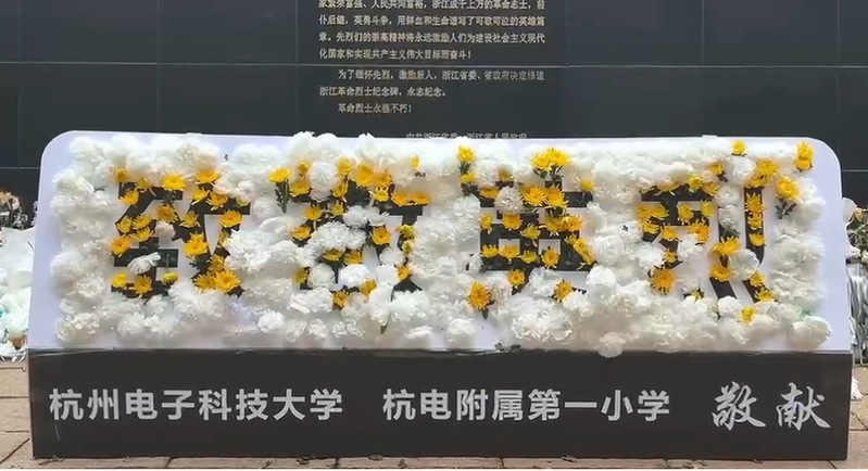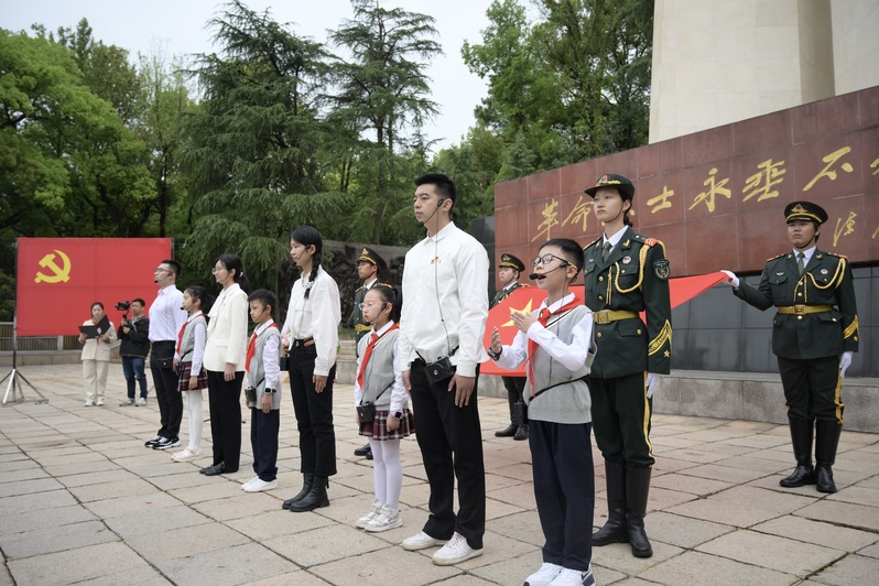 在纪念碑前,杭电附属一小的队员们集体献唱《我们是共产主义接班人》,并在大队辅导员老师的领呼下发出振奋人心的呼号。最后,大家一起缓步绕行纪念碑一周,敬献鲜花,接受了一次党性再教育和精神洗礼。