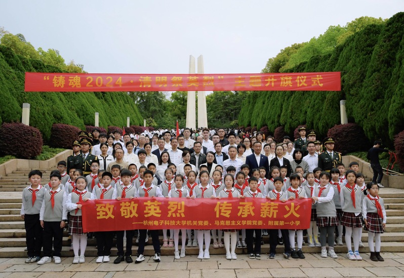 梨花风起正清明,感恩奋进且当时。2024年是新中国成立七十五周年,是学校党代会召开之年,更是全省思政教育一体化建设的扩优提质年。为传承红色基因,赓续红色血脉,打造思政育人共同体。4月2日上午,杭州电子科技大学机关党委、马克思主义学院党委、杭电附属第一小学联合组织开展浙江省大中小思政教育一体化建设活动,在杭州电子科技大学“大思政课”实践教学基地——浙江省革命烈士纪念馆,举行了“致敬英烈、传承薪火”清明祭英烈活动。杭州电子科技大学党委副书记钱波、机关党委书记袁秀川、马克思主义学院党委书记刘孝菊、杭电附属一小党总支书记、校长董夫奏出席了活动,机关党委党支部书记、组织员、党员代表、马克思主义学院师生党员代表、附属小学师生共300余人参加了活动。