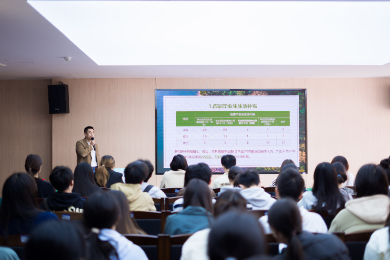 在引才推介环节,临安区人才管理服务中心科长李兴浩生动宣传介绍了临安区位优势、产业结构、人才需求、人才政策等内容,热忱欢迎在杭学子到临安就业创业。杭州华旺新材料科技股份有限公司向同学们介绍了企业发展历程、职位晋升通道、岗位薪酬待遇等方面,帮助学生更好的了解企业情况。