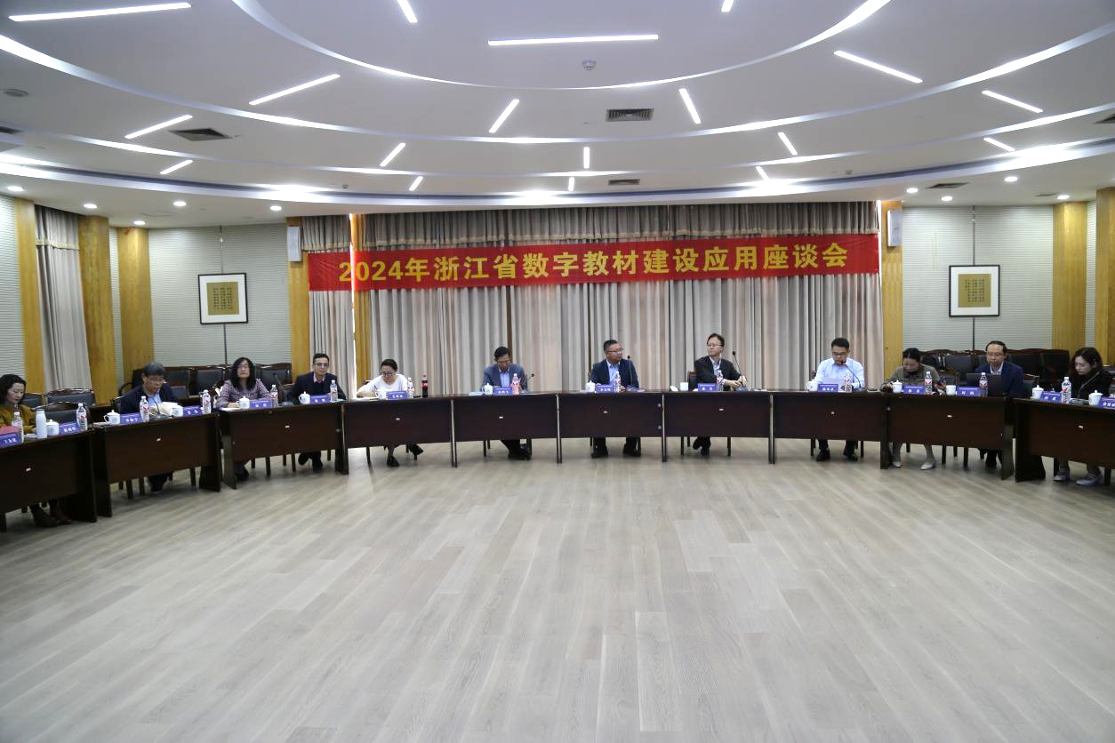 4月11日下午,在浙江省教育厅教材管理处的指导下,由全国高等学校教学研究中心主办,杭州电子科技大学、浙江工商大学、高等教育出版社共同承办的浙江省数字教材建设应用座谈会在我校成功举办。本次会议旨在深入贯彻党的二十大精神,落实国家教育数字化战略行动,推进教育数字化转型,打造高质量数字教材体系。浙江省教育厅教材管理处处长朱鸿飞、主任毛寒冰、全国高等学校教学研究中心办公室主任张龙、全省十余所兄弟高校教务处处长及分管教材建设负责人参加会议。会议由高等教育出版社数字教材出版中心院校合作部主任郭金录主持。