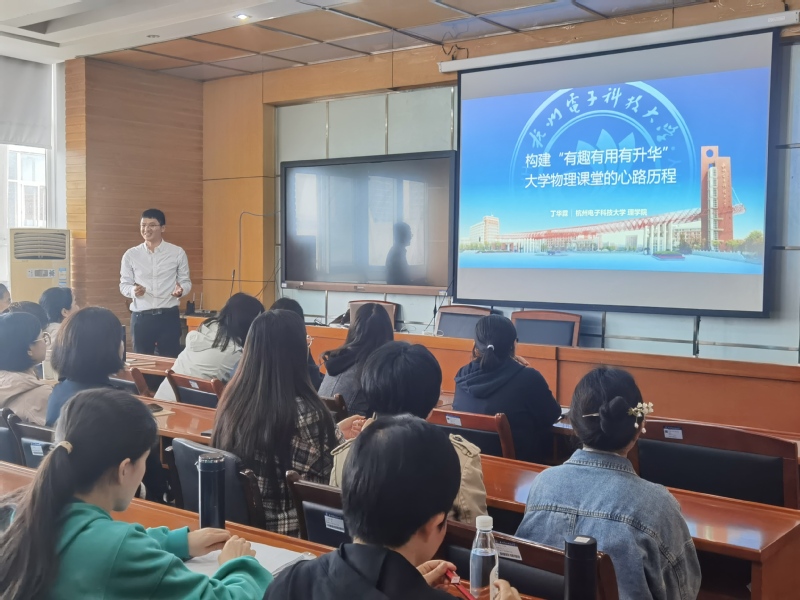 4月17日下午,理学院在6教南528报告厅举办了一场教学分享活动,本次活动邀请了2023年浙江省第十三届高校青年教师教学竞赛特等奖获得者理学院教师丁华霖做“构建有趣有用有升华大学物理课堂的心历路程”的教学分享,来自电子信息学院、网络安全学院、通信工程学院、理学院等30多名教师参加了本次分享活动,活动由理学院党委书记吴一桥主持。