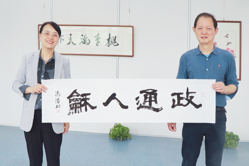座谈会后,老教授们参观了院史馆和思政教育基地(遵义会议主题展馆)。在院史馆,王艳书记的详细讲解让老教授们对学院的发展历程有了更深刻的认识。冯浩教授在院书画社挥毫泼墨,书写了“宁静致远”和“政通人和”的条幅,表达了对学院未来发展的美好祝愿。 在遵义会议主题展馆,冯浩结合自己参加“重走长征路”活动的经历,为大家讲述了遵义会议的历史意义,进一步激发了大家对党史学习的热情。