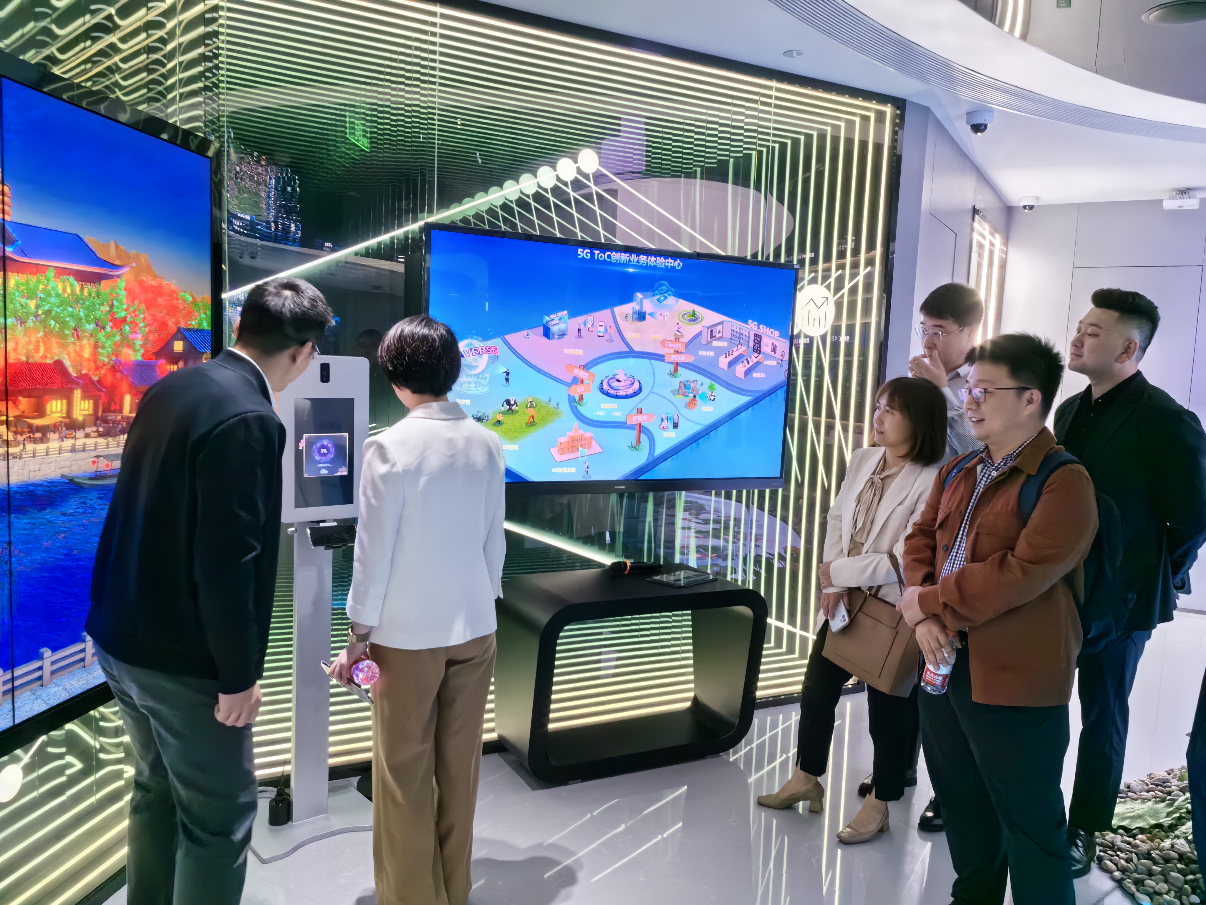 在华为浙江代表处负责人陪同下,游彬一行考察了华为数智展厅,深度体验了智慧园区、数字化办公、元宇宙、鸿蒙智能家居等创新方案实践,讲解员通过现场讲解及互动演示,分别展示了华为企业发展历程、人才培养及各方面的应用案例,华为在浙江发展战略、全球培训中心讲师风采等,对华为文化、师资投入、科技进展等有了具象性感知。