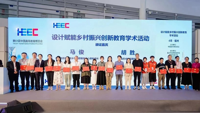 近日,在福州召开的第61届“中国高等教育博览会”之“设计赋能乡村振兴创新教育”学术活动现场为2023第二届“全国高校设计赋能乡村振兴创新案例”入选案例代表颁发入选证书,由人文艺术与数字媒体学院产品设计系张振颖老师主持,产品设计、数字媒体艺术、数字媒体技术跨专业学生团队共同完成的《数字技术赋能浙江省农民画文化创意产业创新实践项目》成功入选。