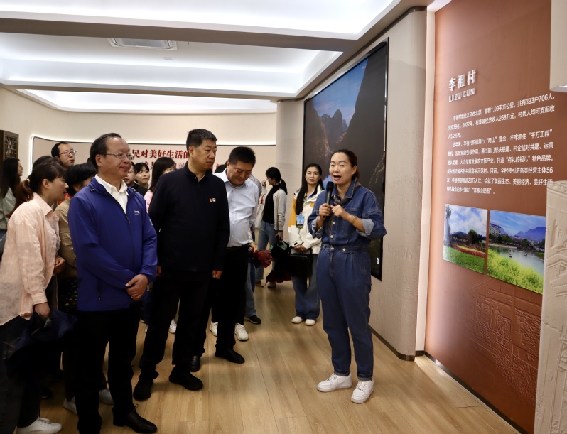 在李祖村,党员们参观了李祖村的党群服务中心、“共富市集”、扎染商铺等场所。在党群服务中心,大家学习李祖村的发展历程,感受浙江省“千万工程”扎实推进共同富裕的显著成效;在“共富市集”等场所,大家穿过铺满鹅卵石的小道,欣赏上百个磨盘砌成的花坛,坐在树荫下碾子搭起的茶座,在白墙墨瓦、长廊祠堂、小桥流水和静谧时光中感受着典雅古朴、错落有致的江南园林村落,感受着村子里每个细节所透露出的生机与活力。