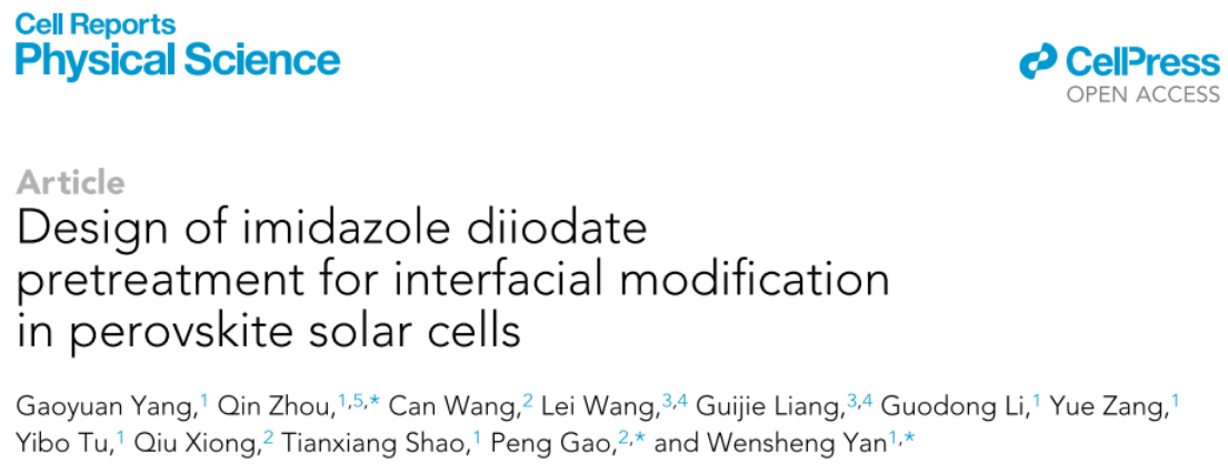 针对钙钛矿太阳能电池在实际应用方面现存的关键科学问题,杭州电子科技大学电子信息学院&碳中和新能源研究院能源电子团队严文生团队于近期在该方面取得重要研究进展。两名研究生杨高元和邵天翔分别在Cell子刊Cell Reports Physical Science发表一作钙钛矿电池研究论文。