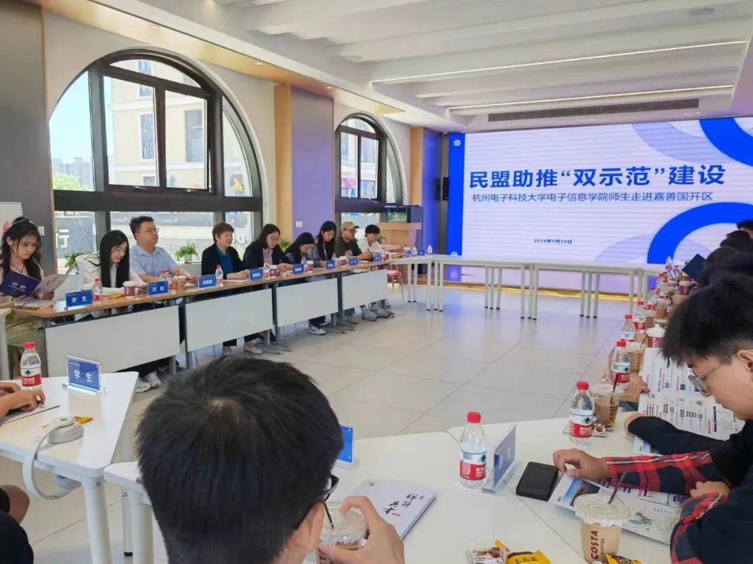 为进一步搭建校企人才供需对接平台,助力嘉善经济技术开发区建强“三支队伍”,深化嘉善“双示范”建设助力活动,5月28日,民盟杭州电子科技大学委员会主委潘亚岚教授、电子信息学院相关负责人及本硕学生代表二十余人赴嘉善经济技术开发区(惠民街道)开展“民盟助推嘉善‘双示范’建设——杭州电子科技大学电子信息学院师生走进国开区”活动。嘉善经济技术开发区(惠民街道)党委委员吴艳华、实业总公司副总经理陈秋屿,民盟嘉兴市委会、民盟嘉善县基层委相关负责同志等陪同参加。