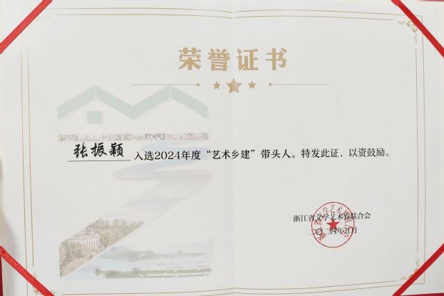5月30日下午,2024年浙江省艺术乡建工作现场会在杭州市余杭区黄湖镇青山村举行。会上,浙江省文学艺术界联合会宣布了首批35个“浙江省艺术乡建特色村”、19个2024年“艺术乡建”典型案例,以及25位2024年“艺术乡建”带头人,并颁发证书。我校人文艺术与数字媒体学院产品设计系副主任张振颖老师入选浙江省2024年“艺术乡建”带头人。