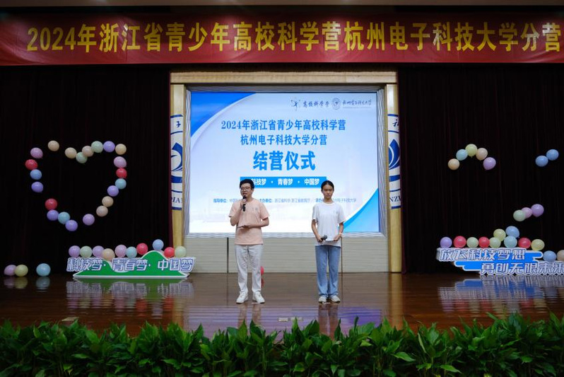 7月26日下午,“科技梦·青春梦·中国梦”2024年浙江省青少年高校科学营杭州电子科技大学分营闭营仪式在科技馆二楼报告厅举行,为科学营活动画上圆满句号。浙江省科技馆(浙江省青少年科技活动中心)副馆长、副主任赵国治,浙江省科技馆(浙江省青少年科技活动中心)青少部高校科学营项目主管李梦琦,杭州电子科技大学后勤服务中心负责人,招生就业处、学生处、教务处相关负责人以及团委等老师等出席闭营仪式。