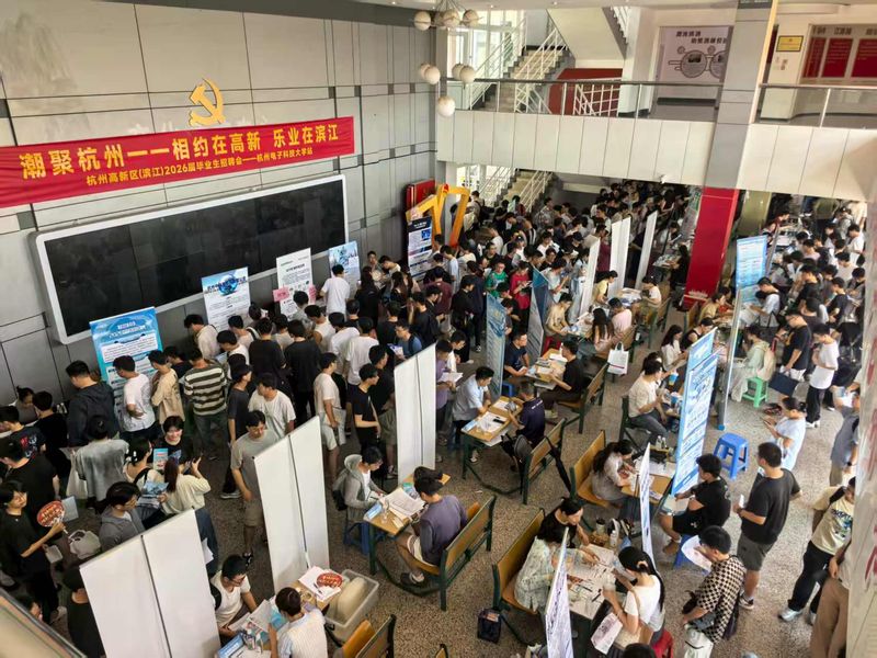 9月16日,“潮聚杭州——相约在高新 乐业在滨江”杭州高新区(滨江)2026届毕业生招聘会顺利举办。活动当天,杭州高新区(滨江)携72家优质用人单位为毕业生提供2300+需求,校内外1000余名学生参加活动。此次招聘吸引了包括吉利控股、海康威视、迪普科技、大华技术、安恒信息等众多优质企业,提供了技术研发、软件开发、算法工程等核心岗位,与学校电子信息、计算机、自动化、网络安全等优势专业高度契合。