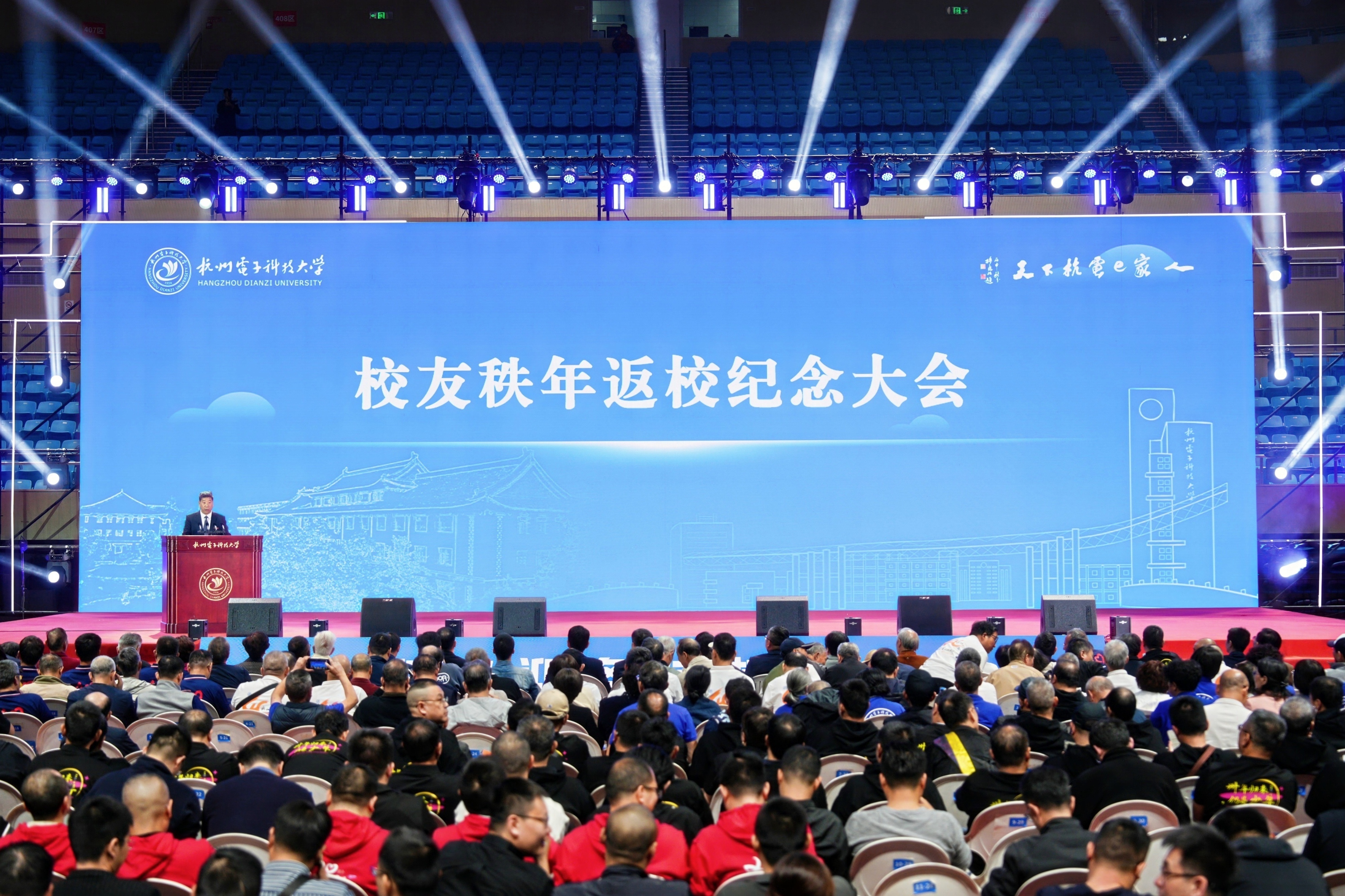 10月25日,杭州电子科技大学下沙校区体育馆内洋溢着浓浓的怀旧情谊与重逢喜悦。毕业50周年、40周年、30周年、20周年、10周年的1200余名校友跨越山海,重返母校热土,参加2025年校友秩年返校纪念大会。校党委书记王尧祥、校长陈积明等在家校领导班子成员,各学院、机关部处负责人,校友们当年的恩师,以及各学院师生代表齐聚一堂,共同见证这场意义深远的相聚。