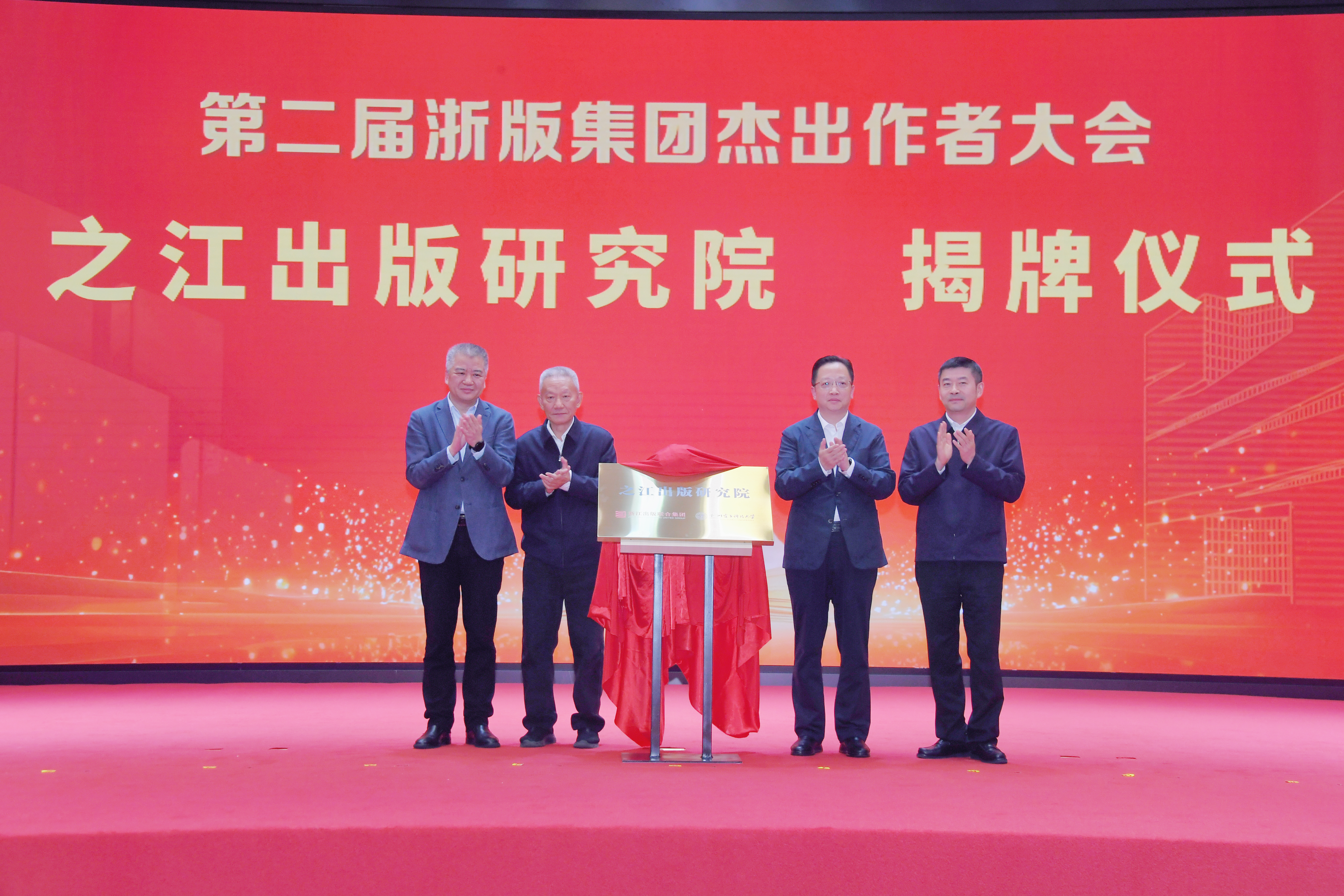 10月25日,第二届浙版集团杰出作者大会在杭州召开。本次大会上,浙江省委宣传部副部长虞汉胤、中国出版协会理事长邬书林、杭州电子科技大学党委书记王尧祥、浙江出版联合集团董事长、党委书记程为民共同为杭电与浙版集团共建的“之江出版研究院”揭牌。