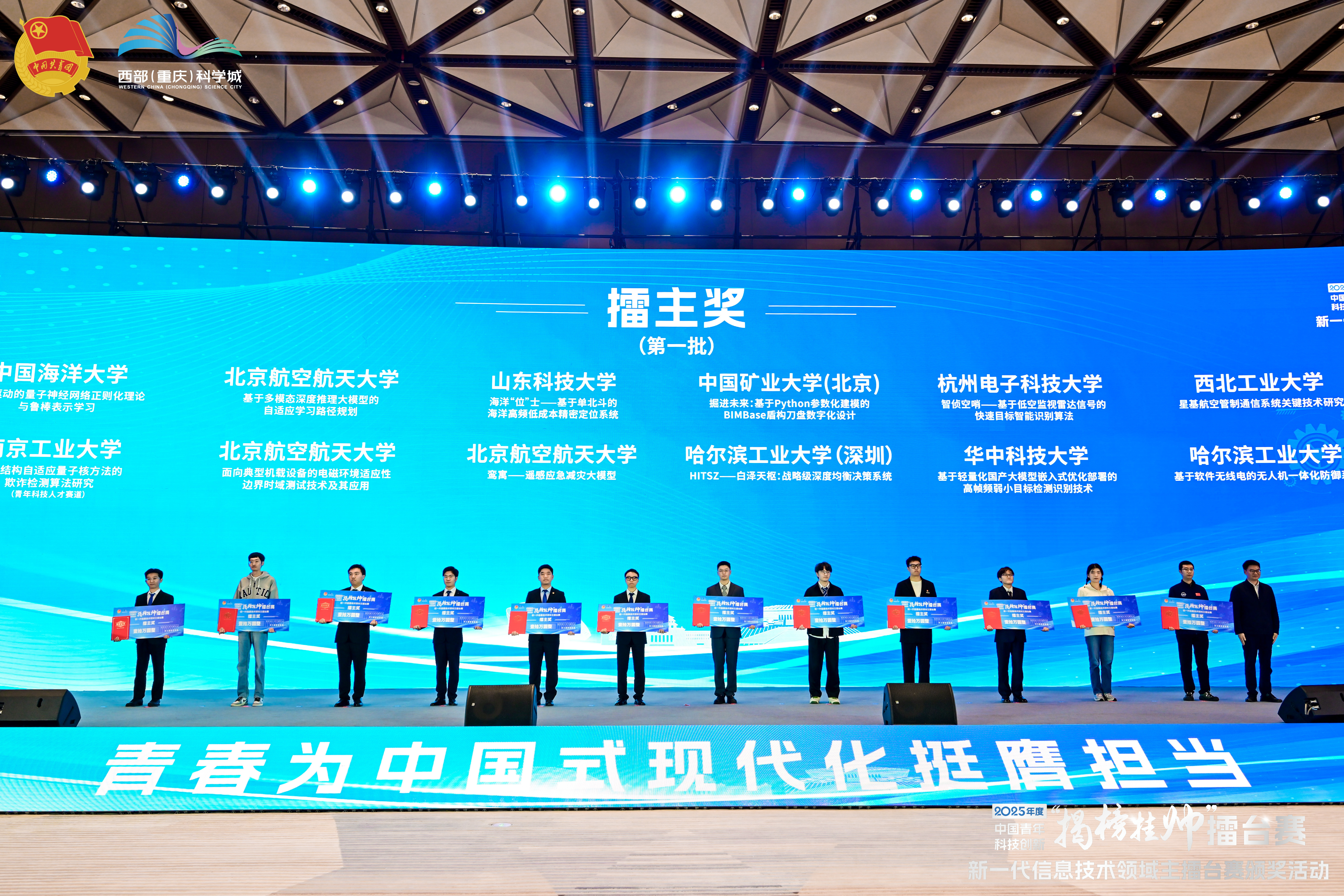 10月28日,由共青团中央、中国科协、教育部、中国社科院、全国学联主办第十九届“挑战杯”竞赛2025年度中国青年科技创新“揭榜挂帅”擂台赛落下帷幕,本届赛事聚焦新一代信息技术、人工智能等8大战略性新兴产业,在全国设立8个主擂台城市。我校共计82支学生团队参加比赛,最终斩获擂主1项、特等奖3项、一等奖5项、二等奖9项、三等奖7项、优胜奖6项,刷新我校在该赛事创办以来的历史最佳纪录,充分展现了我校“以创育人、以赛促学”的显著成效。