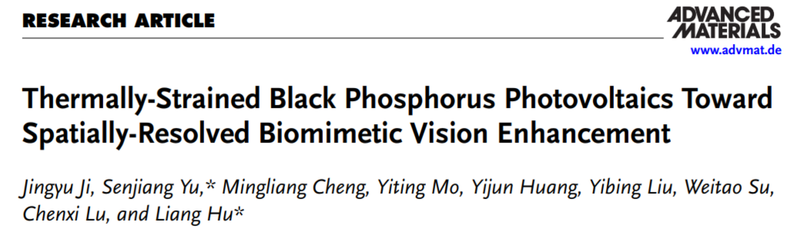 近日,我校材料与环境工程学院2023级硕士研究生姬靖宇以第一作者身份在材料科学顶级期刊《Advanced Materials》上发表题为“Thermally-Strained Black Phosphorus Photovoltaics Toward Spatially-Resolved Biomimetic Vision Enhancement”的研究论文,通讯作者为杭州电子科技大学胡亮、余森江教授,杭州电子科技大学为第一署名单位。据悉,《Advanced Materials》是材料科学领域公认的顶级刊物,由Wiley出版,创刊于1989年,以半月刊形式发行,在材料科学、纳米技术、能源转换、凝聚态物理等前沿领域具有全球影响力,是JCR和中国科学院双1区TOP期刊,最新影响因子为29.4。