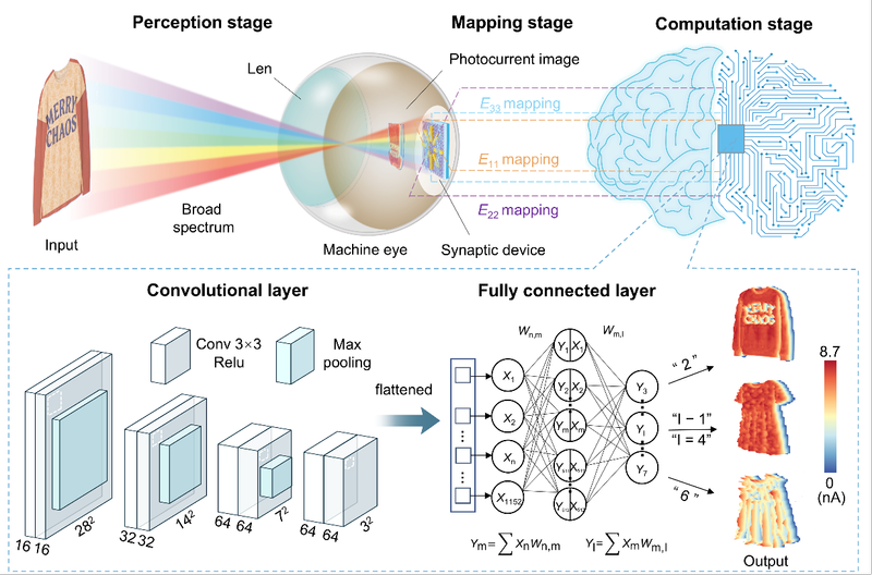 研究团队进一步挖掘该器件的仿生应用潜力,利用其频率依赖的突触增强和脉冲宽度调制的塑性转变特性,构建了一种“全合一(all-in-one)”空间分辨的仿生视觉传感器。该传感器能够实现“感知–计算”一体化,对混合图像的协同识别准确率最高可达94.1%,为开发下一代低功耗、高集成度的神经形态视觉芯片提供了新路径。该工作不仅为黑磷等低对称性层状材料的光电调控提供了新思路,也展示了无结型体光伏效应在智能感知与计算一体化系统中的可行性,研究成果有望推动未来人工智能视觉、仿生感知芯片等领域的发展。