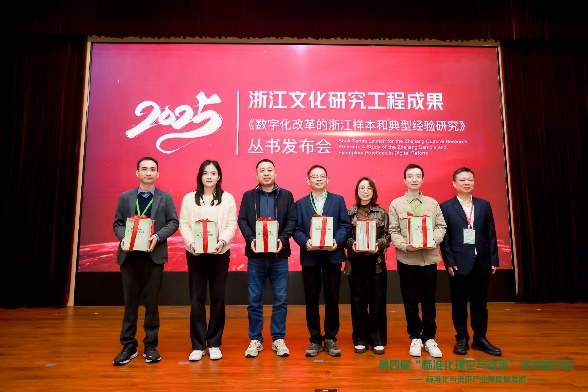 论坛上举行了浙江文化研究工程成果《数字化改革的浙江样本和典型经验研究》丛书发布会。项目负责人周青教授简要介绍了丛书编写背景、编写历程与主要内容,并对支持丛书编写的各位领导、专家、企业家等表达了真挚的感谢。浙江省社会科学界联合会二级巡视员刘东女士、浙江科学技术出版社宋东总编辑、丛书编写指导专家陈畴镛教授、项目负责人周青教授以及丛书作者等共同启动丛书发布会。项目负责人周青教授向浙江大学、中共浙江省委党校、杭州电子科技大学、浙江理工大学、浙江工商大学、浙江外国语学院等图书馆赠送丛书。