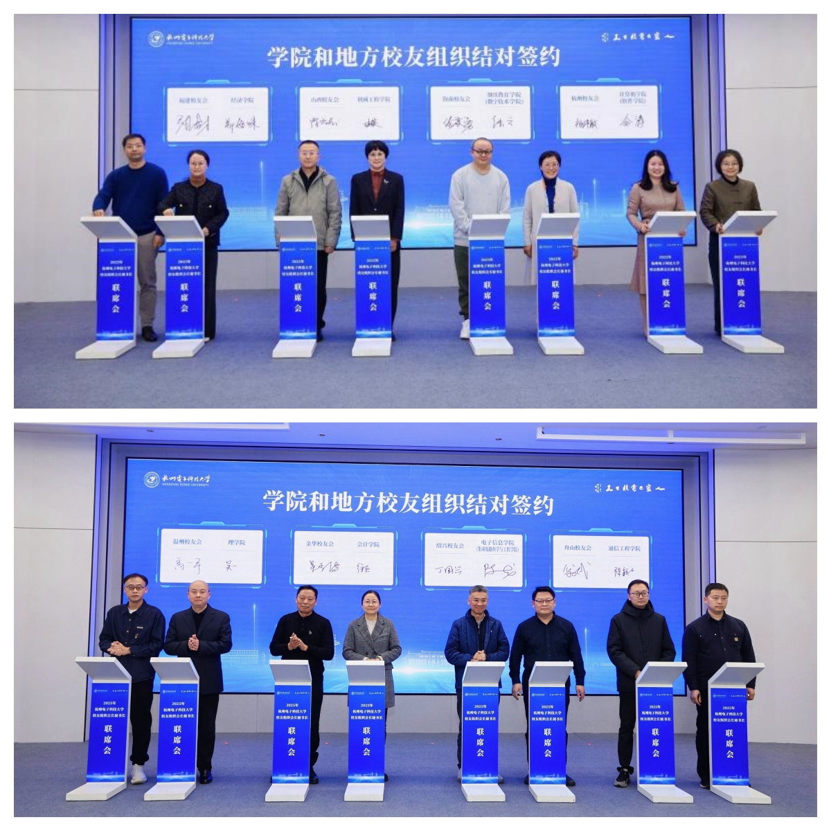 为将计划落地,会议举行了8对地方校友会与专业学院的结对签约仪式。这些结对旨在促进地方校友会与学院资源的深度整合,实现优势互补。签约双方包括:福建校友会和经济学院、山西校友会和机械学院、海南校友会和继续教育学院、杭州校友会和计算机学院、绍兴校友会和电子学院、金华校友会和会计学院、温州校友会和理学院、舟山校友会和通信学院。签约代表们握手合影,现场气氛热烈。