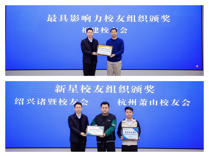 为进一步激发校友组织的活力,会议设立了表彰环节。福建校友会凭借其出色的组织工作和影响力,被授予“最具影响力校友组织”称号;绍兴诸暨校友会和杭州萧山校友会则因快速成长,喜获“新星校友组织”奖。这些表彰不仅是对校友辛勤付出的肯定,更激励了其他组织从中汲取榜样的力量。获奖校友组织代表们纷纷表示,将继续发扬杭电精神,为母校添彩。