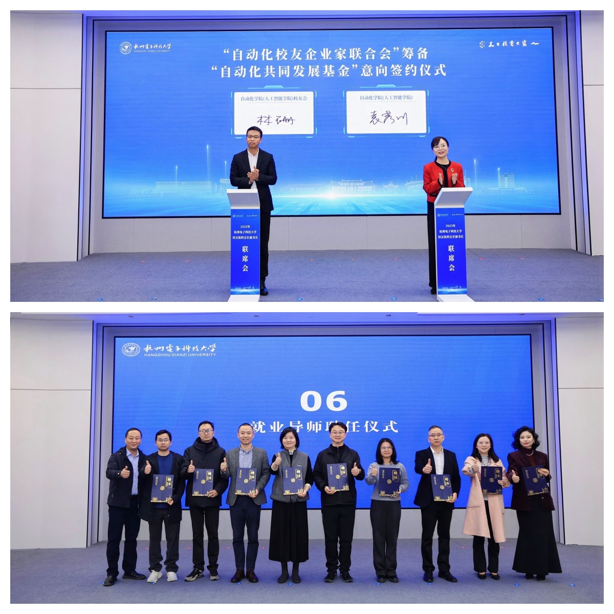 会议还关注了校友企业与就业支持。自动化学院校友会会长林珊发起筹备成立“自动化校友企业家联合会”,并现场宣布拟向学校教育发展基金会捐赠百万元设立“自动化共同发展基金”。该基金将用于支持自动化领域的创新创业项目。会上举行了签约仪式。现场有9位校友受聘就业导师,他们将指导在校生就业创业,展现校友回馈母校的担当。