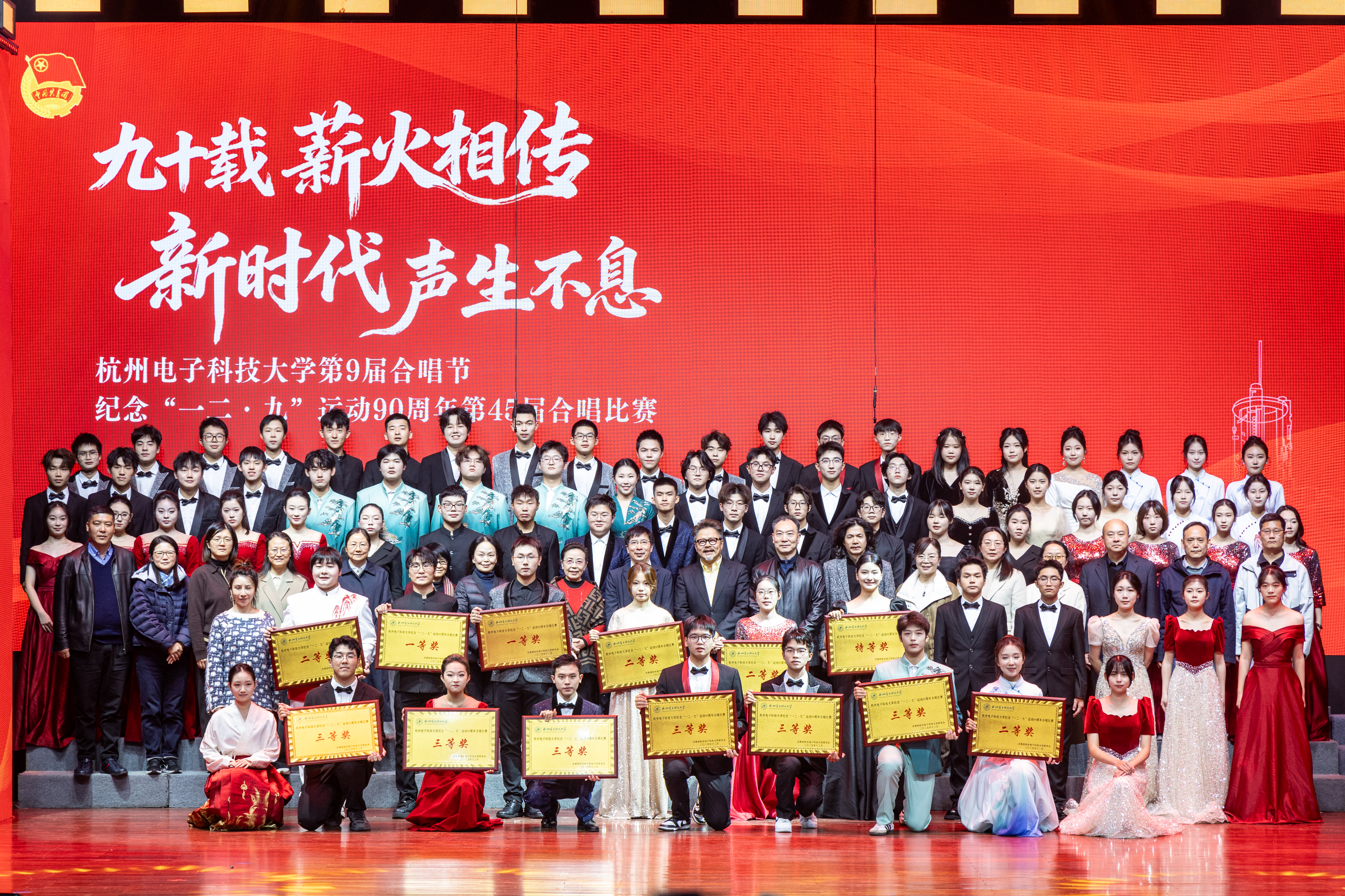 经过激烈角逐,网络空间安全学院、外国语学院合唱团凭借对《我的祖国》的完美诠释斩获特等奖,电子信息学院合唱团演唱的《十送红军》、研究生院合唱团演唱的《国家》获一等奖,人艺数法学院《映山红》、通信工程学院《追寻》,自动化学院《歌唱祖国》,经济学院《天路》获得二等奖。材料与环境工程学院、杭电圣光机联合学院《游击队歌》,管理学院《长城谣》,机械工程学院《我们走在大路上》,卓越学院、会计学院《在希望的田野上》,理学院《草原上升起部落的太阳》,计算机学院《我和我的祖国》获得三等奖。此外,外国语学院夏诗蔓同学、电子信息学院赖麒如同学、人艺数法学院潘弈宁同学获最佳指挥奖。