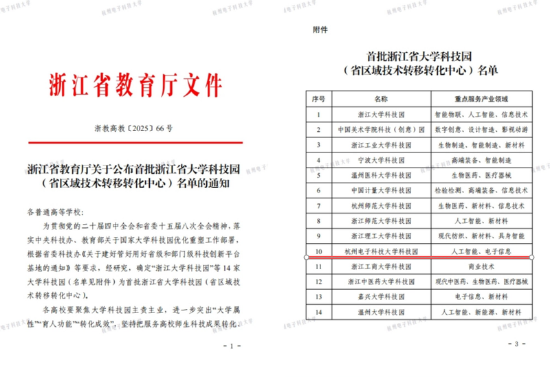 近日,首批浙江省大学科技园(省区域技术转移转化中心)名单公布,我校大学科技园成功入选,标志着学校在深化教育、科技、人才一体化发展,推动科技创新与产业创新深度融合方面取得了又一重要成果。