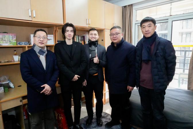 新春将至,年味渐浓。2月9日下午,副校长李文钧一行深入G区公寓,亲切慰问寒假期间留校学习生活的中外学生,并与师生共同参与新春游园联欢活动,共迎马年新春,学生处处长夏涛,国际教育学院院长王一安等一同参加。
