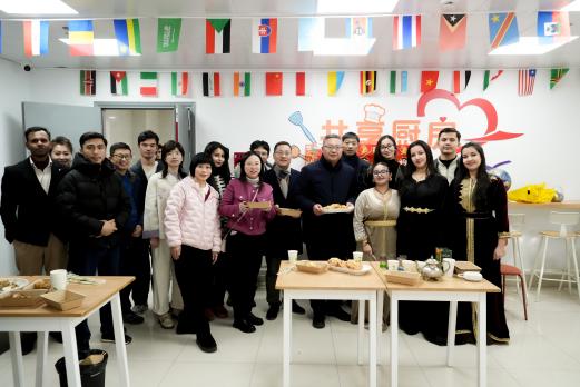 李文钧首先来到留学生公寓共享厨房,实地查看运行情况,并兴致勃勃地品尝了来自摩洛哥、孟加拉、乌兹别克斯坦等国留学生亲手烹饪的家乡美食。留学生们纷纷表示,共享厨房让他们在异国他乡也能端起“家的味道”,今年学校还为厨房加装了空调,无论严寒酷暑,烹饪时都倍感温暖与贴心。