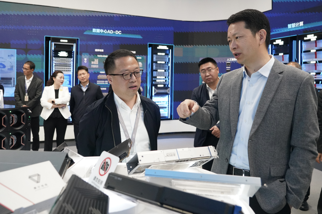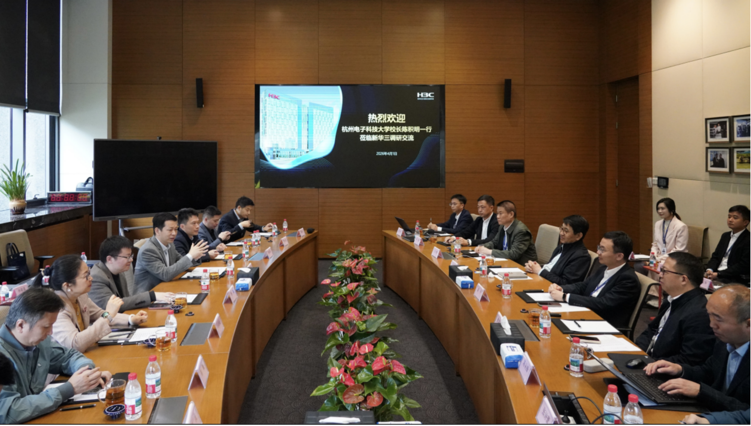 新华三集团高级副总裁谌平、王小鲁、曾富贵,副总裁李桉,学校副校长颜成钢、学术副校长李攀及双方相关单位负责人参加本次调研。