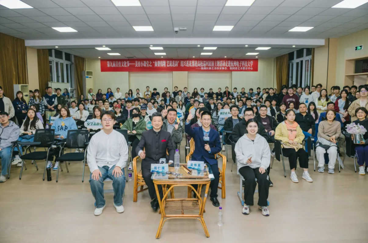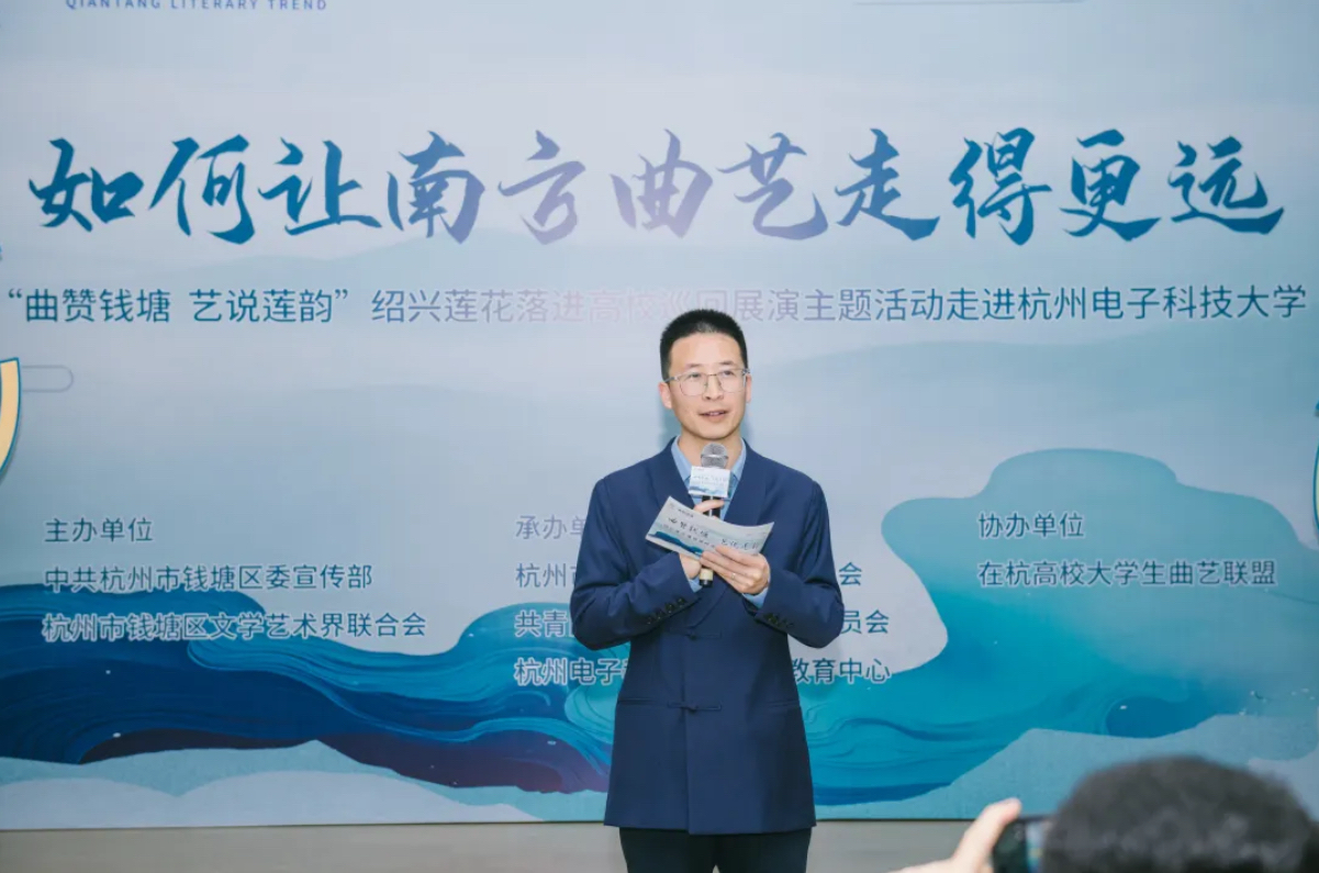 当江南乡音在杭电校园里婉转回荡,非遗传承的火种在青年心中悄然点燃。3月29日晚,中国曲艺家协会副主席、浙江省文联副主席、钱塘区文化顾问,著名绍兴莲花落表演艺术家、中国曲艺牡丹奖最高奖获得者——翁仁康老师,如约走进杭州电子科技大学,开启我校第九届美育文化节美育小课堂首讲——“曲赞钱塘 艺说莲韵”绍兴莲花落进高校巡回展演第二站。本次活动由钱塘区曲杂协副主席兼秘书长吴伟泉老师主持。