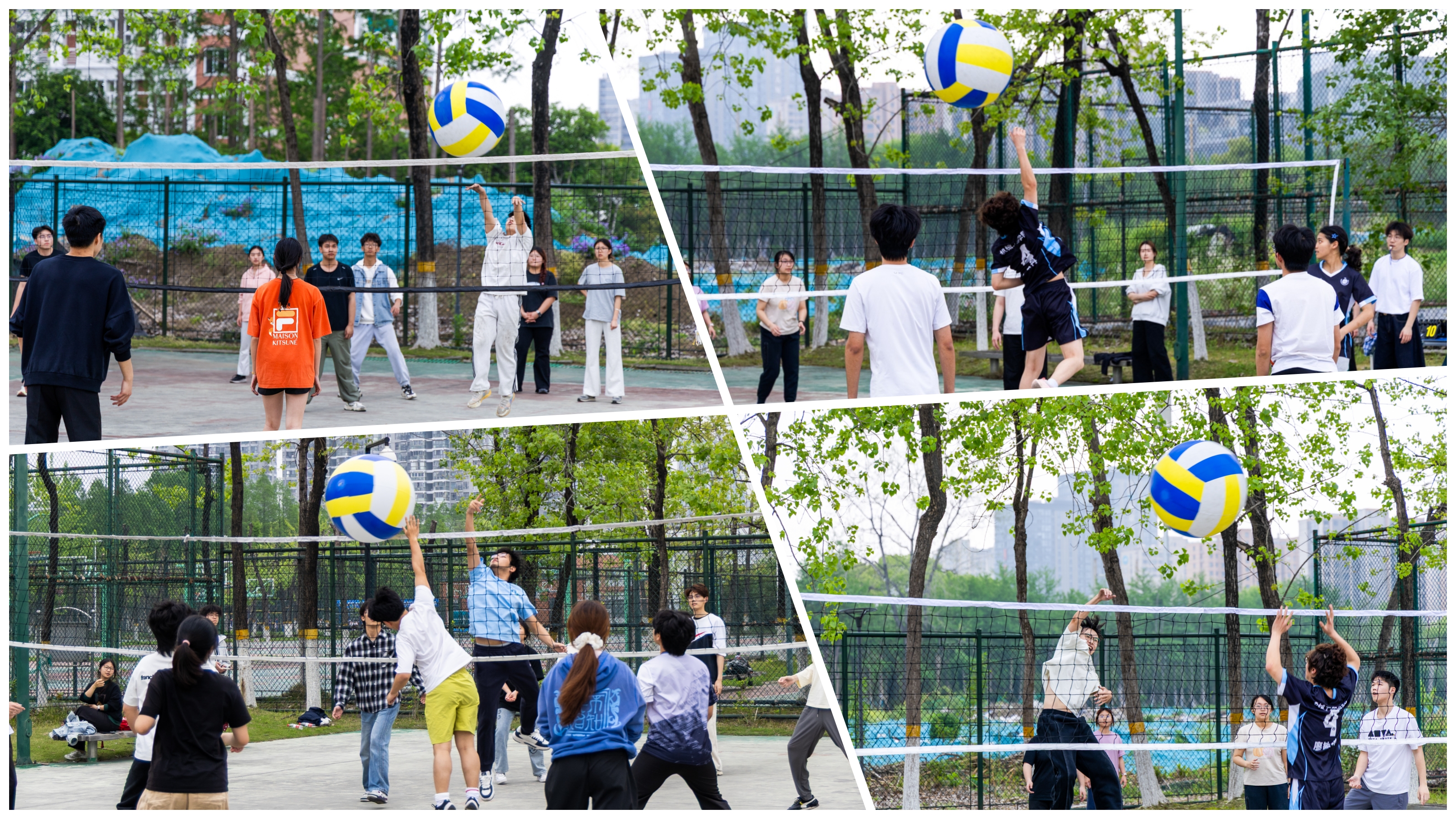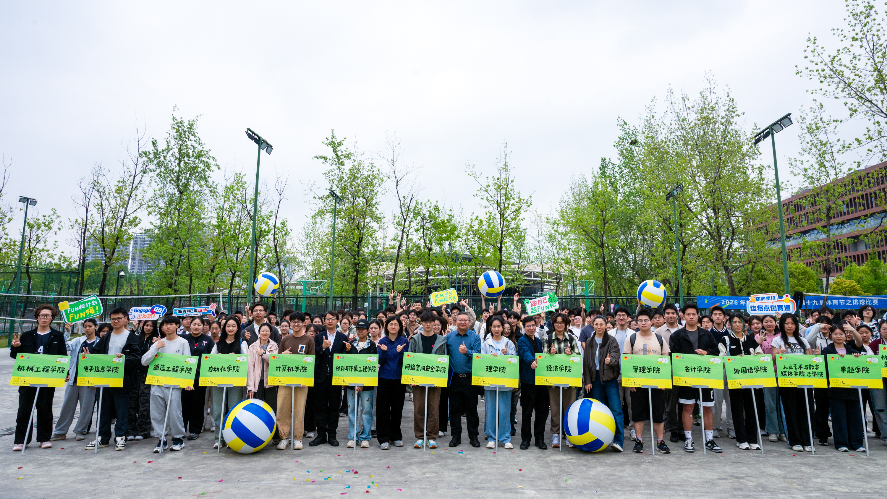 开幕式后,各学院代表队进行了热身运动,首场“Fly High”气排球争霸赛随即展开。全校15支学院代表队迎来了首轮小组对决的哨响。赛场上,发球、起跳、拦网、扣杀,队员们默契配合,每一次精彩的得分都引来场边观众的阵阵欢呼,气氛热烈、精彩纷呈。经过激烈角逐,淘汰赛首轮战果出炉:材料与环境工程学院(AB组胜者)、卓越学院(CD组胜者)、电子信息学院(EF组胜者)以及自动化学院(GH组胜者)凭借出色的战术与拼搏精神脱颖而出,成功晋级下一轮。