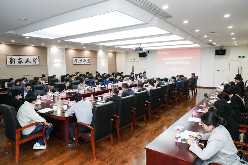 4月13日下午,校属企业工作会议暨2026年任务书及责任书签约会在下沙校区行政楼一楼会议室召开。校党委委员、副校长周青主持会议并讲话,校党委委员、纪委书记任蔚青出席会议并开展集体廉政谈话。产学研融合发展中心、计财处、审计处、国资实验处、公管处、工会等学校相关部门负责人、资产经营公司所属企业负责人、分管财务负责人及财务工作人员等参加会议。