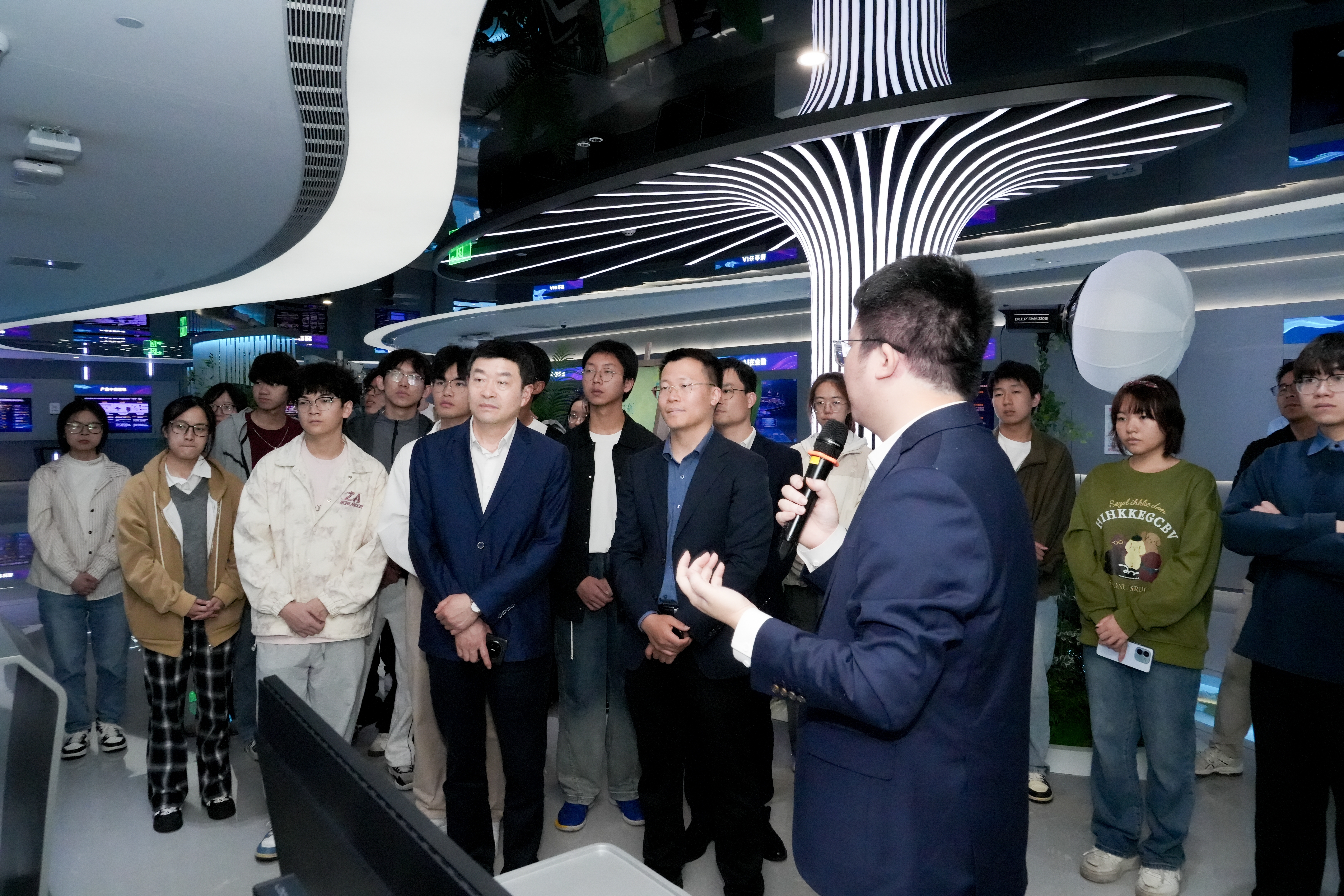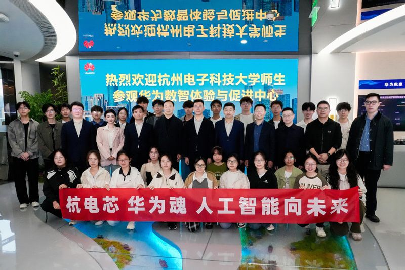 在华为浙江数智体验与促进中心实景教学环节,师生们实地感受了华为公司在人工智能、数字技术等领域的前沿创新成果,沉浸式体验了科技变革带来的深刻影响。