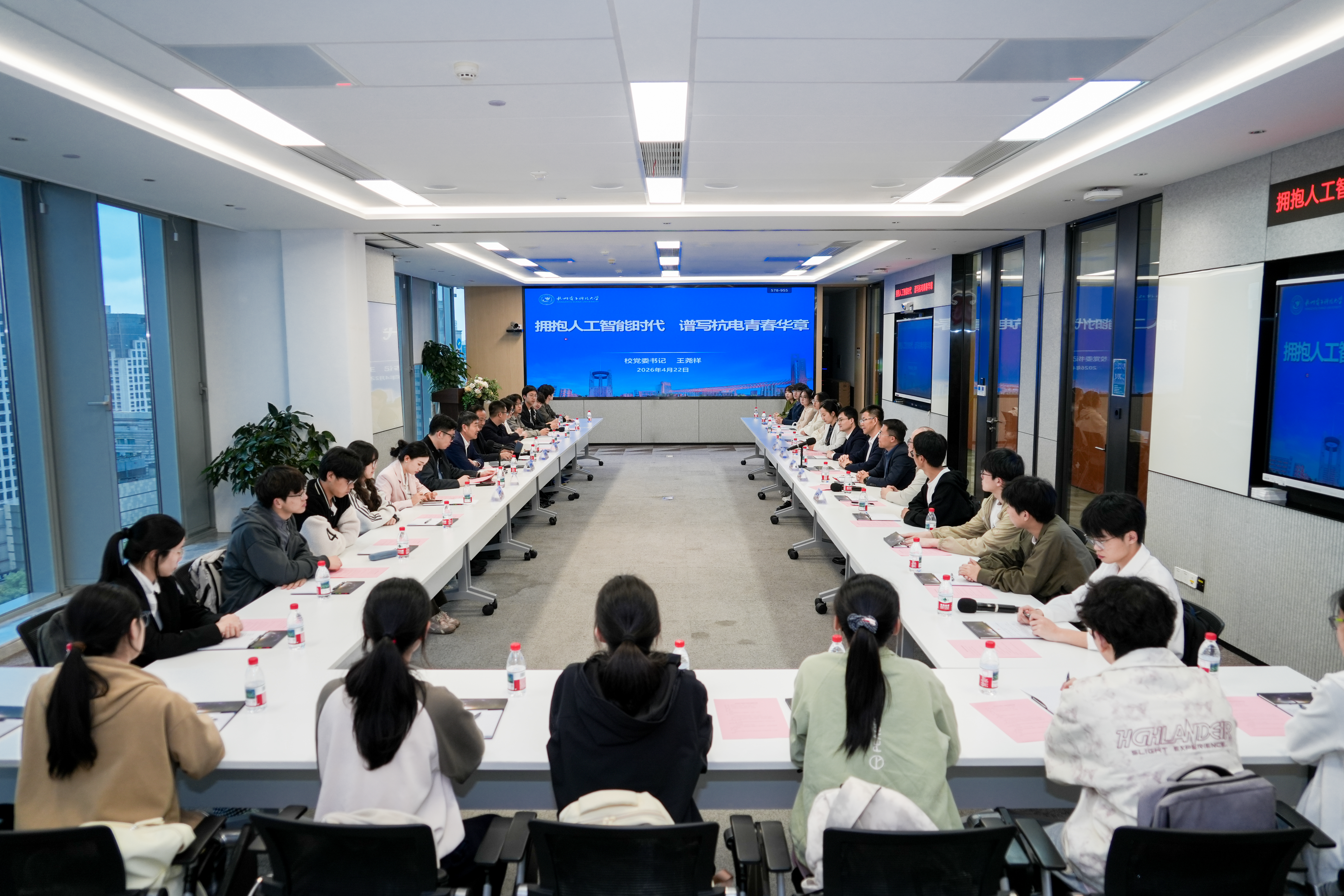 王尧祥以《拥抱人工智能时代 谱写杭电青春华章》为题,为电子信息学院学生代表讲授了一堂场景融合的思政课。王尧祥在授课中指出,人工智能正以超出预期的方式重构世界,从“工具延伸”到“独立智能体”、从“工具使用者”到“人机共生”、从“技术竞速”到“战略博弈”的三重变革深刻影响着时代发展。他强调,在智能时代,学习能力、共情能力、创造能力、批判性思维和复杂系统驾驭能力是青年学子应当着力培养的核心素养。