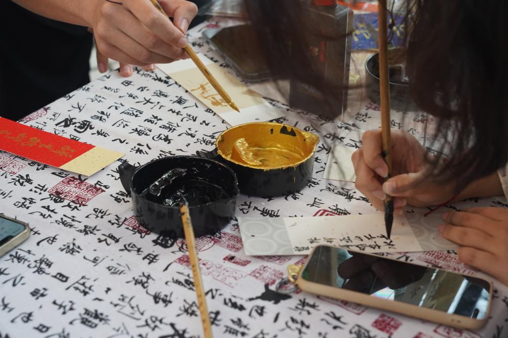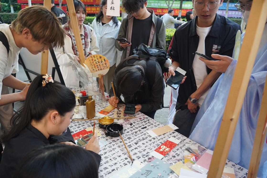 活动现场设置四大主题市集摊位,由梦醒书画社、天文协会、莽原文学社、国学社联合打造,于中午12时正式开放。“丹青写春”摊位开展书签手作活动,以笔墨绘春日意趣;“星宿探春”摊位推出星宿配对等趣味游戏,探寻古代星象时空之美;“诗咏千年”摊位设置闻音识器、春日飞花令等互动挑战,传承诗词雅韵;“礼乐春秋”则提供活字印刷、团扇制作等体验项目,感受传统工艺魅力。各摊位以朝代文化为内核,精巧呈现中华历史的多元魅力,吸引师生踊跃参与。